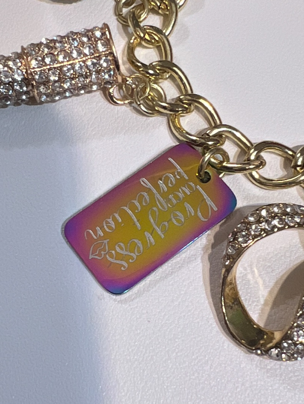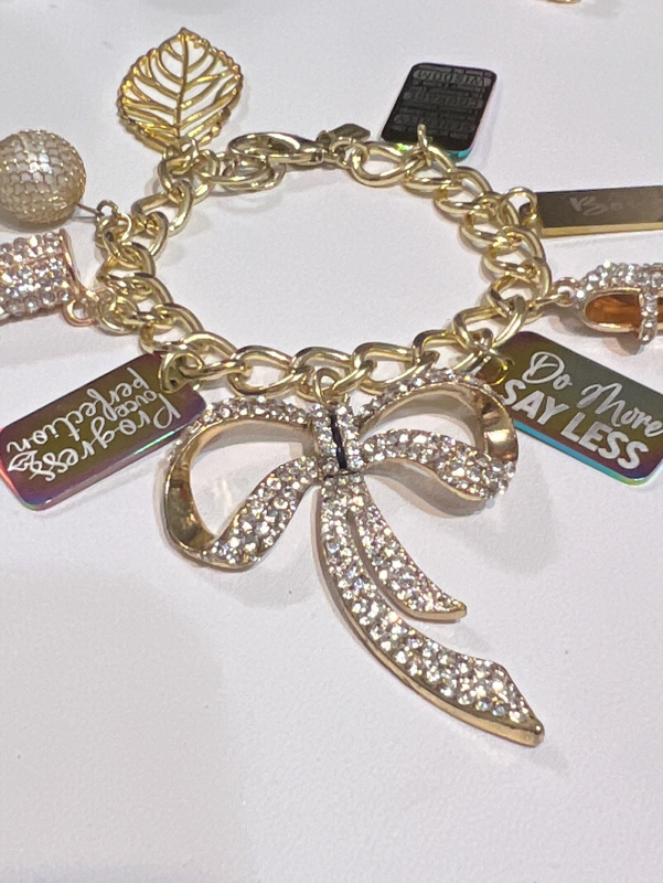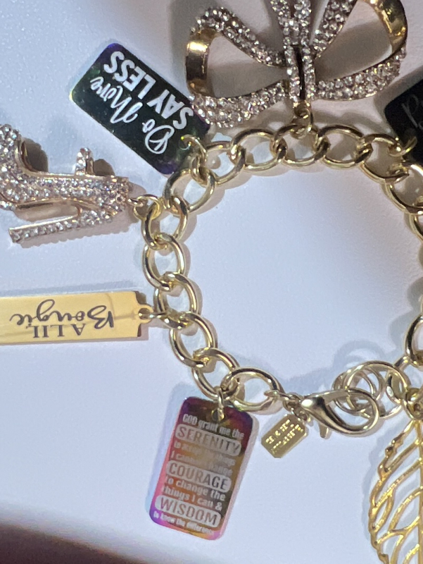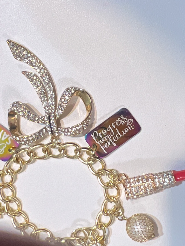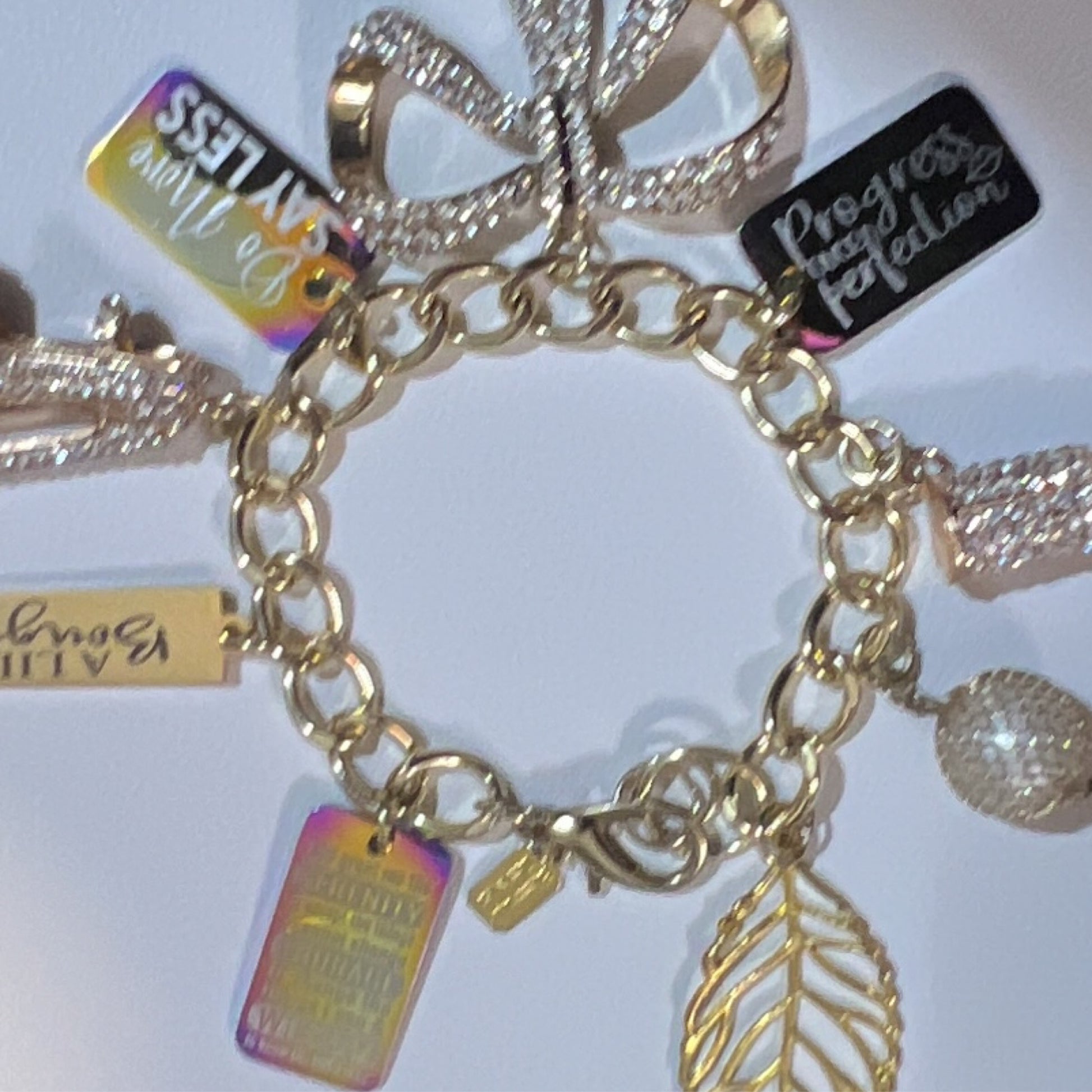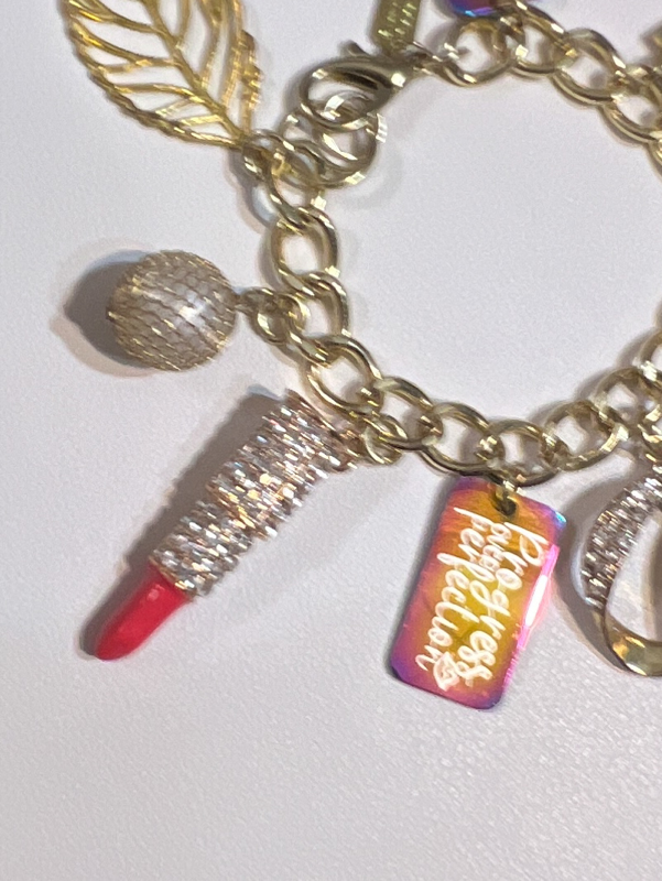 Indulge in the enchanting allure of our Dazzling Beauty Charm Bracelet. Adorned with sparkling and holographic charms, this exquisite piece is a must-have for fashion and beauty enthusiasts. With its adjustable design, it effortlessly fits a variety of wrist sizes. Crafted with a gold bracelet, our timeless pieces add a touch of elegance to any outfit. Elevate your style and embrace the magic of Dazzling Beauty!