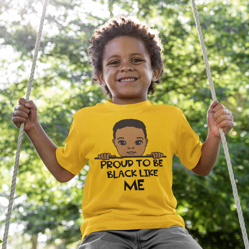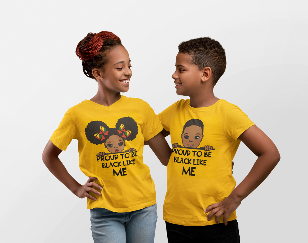 Embrace bold self-expression with our "Proud to Be Black Like Me" unisex, short sleeve T-shirt. Perfect for youths who take pride in their heritage, this shirt features a striking design. Crafted for comfort and durability, it's an empowering statement piece for any wardrobe.