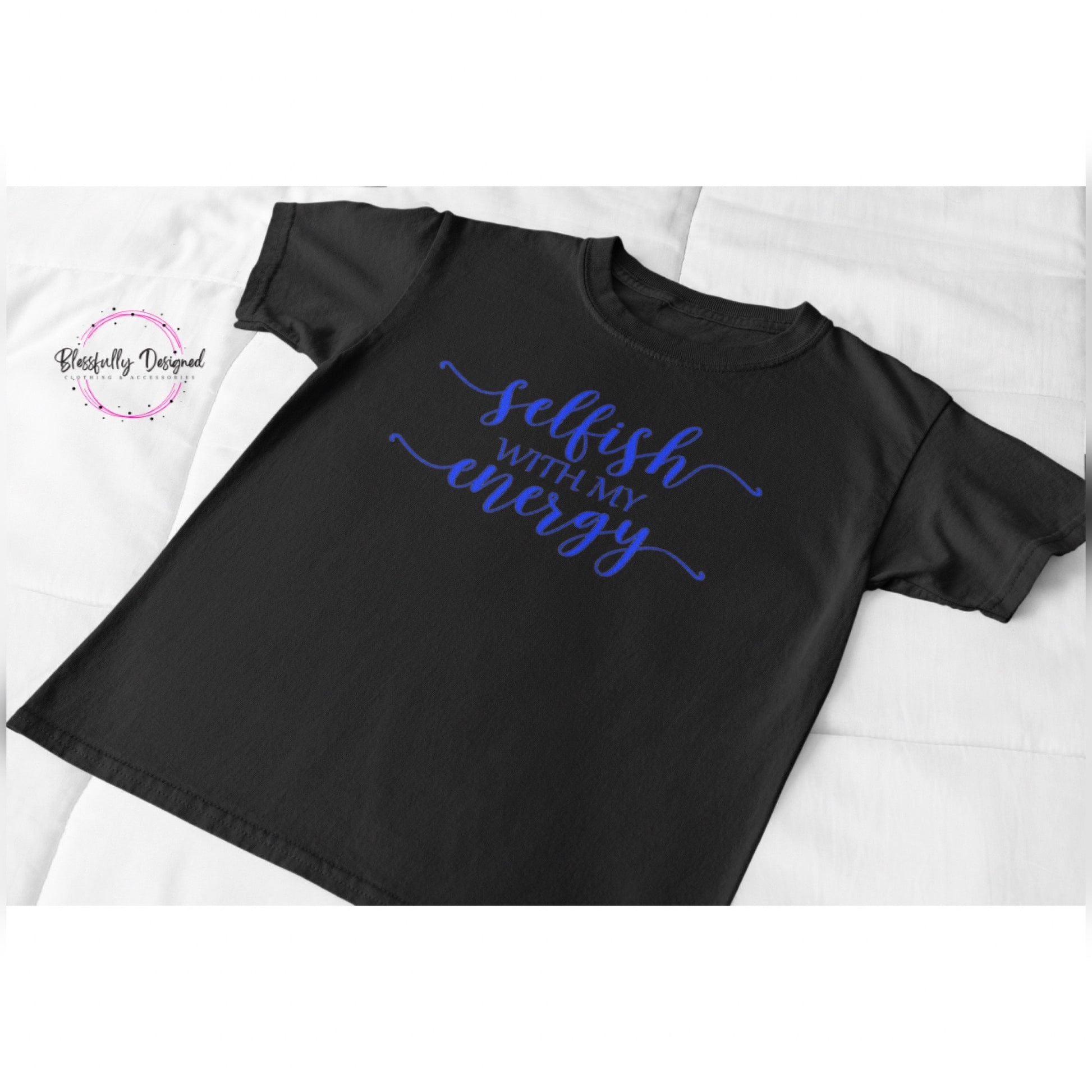 100% cotton • Black • Crewneck • Unisex Sizing • short sleeve shirt • Vinyl design: "Selfish with my Energy"