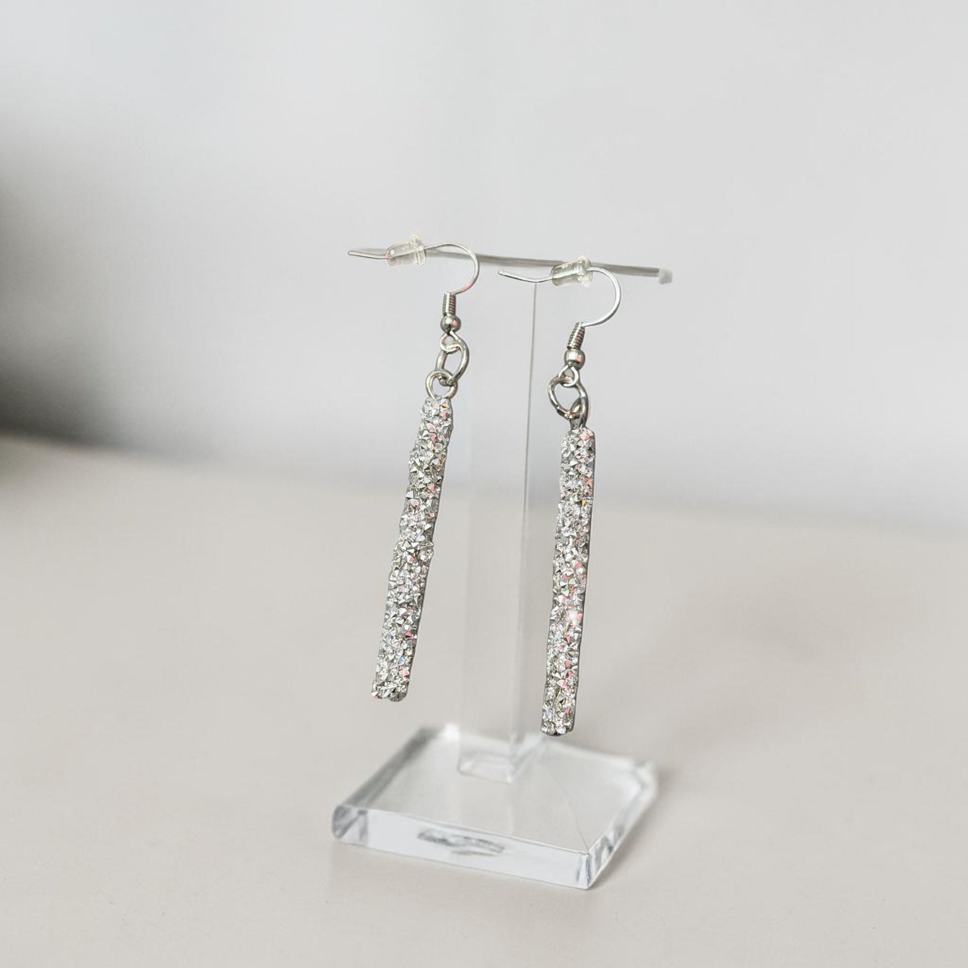 Elevate your accessory game with these dazzling crystal bar drop earrings, designed to add effortless sparkle to any look. Featuring a sleek, elongated silhouette encrusted with shimmering stones, each pair catches the light beautifully for a refined yet eye-catching finish. Lightweight and comfortable with secure hook closures, they’re perfect for both everyday wear and special occasions.